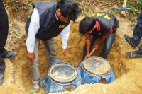 Earlier in 2010, 13,000 rifles had been recovered from Bakakura Gucchagram from Sherpur’s Jhenaigati Upazila. At least 50,000 bullets, rockets, landmines and different varieties of weapons were found at Jhenaigati between 2007 and 2011. More bullets and AK-47 rifles were recovered from a village at Nalitabarhi in 2012. The ULFA;s commander at Sherpur was Ranjan Chowdhury who had assumed a Muslim name , Masud Chowdhury. He was arrested as he left the Rumpa Clinic after treatement in 2010 and his wife Sabitri Sangma immediately told media about the arrest, fearing the RAB would bump off her husband.