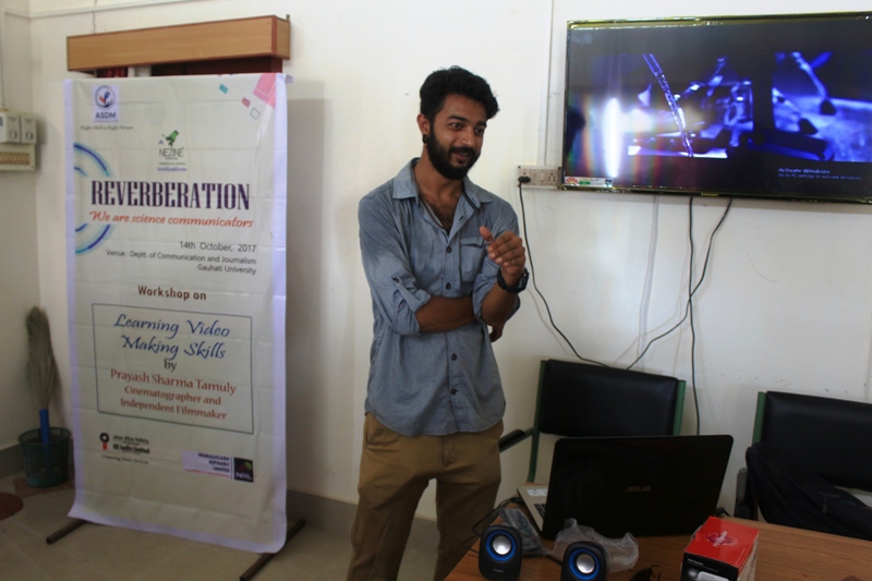 Three parallel skill development workshops- “Basics of Science Photography” by Udayan Borthakur, Head, Wildlife Genetics Division, Aaranyak, “Learning Digital Media Skills” by filmmaker Dip Bhuyan and Dr Bharati Bharali, Assistant Professor, Department of Communication and Journalism, Gauhati University and “Learning Video Making skills” by Prayash Sharma Tamuly, Cinematographer and independent filmmaker were conducted on October 14 in which students from different educational institutions including Gauhati University, Cotton University, Assam School of Journalism D.K. College, Mirza, Handique Girls’ College, Institute of Distance and Open Learning, Digboi College, Boko High School had participated.