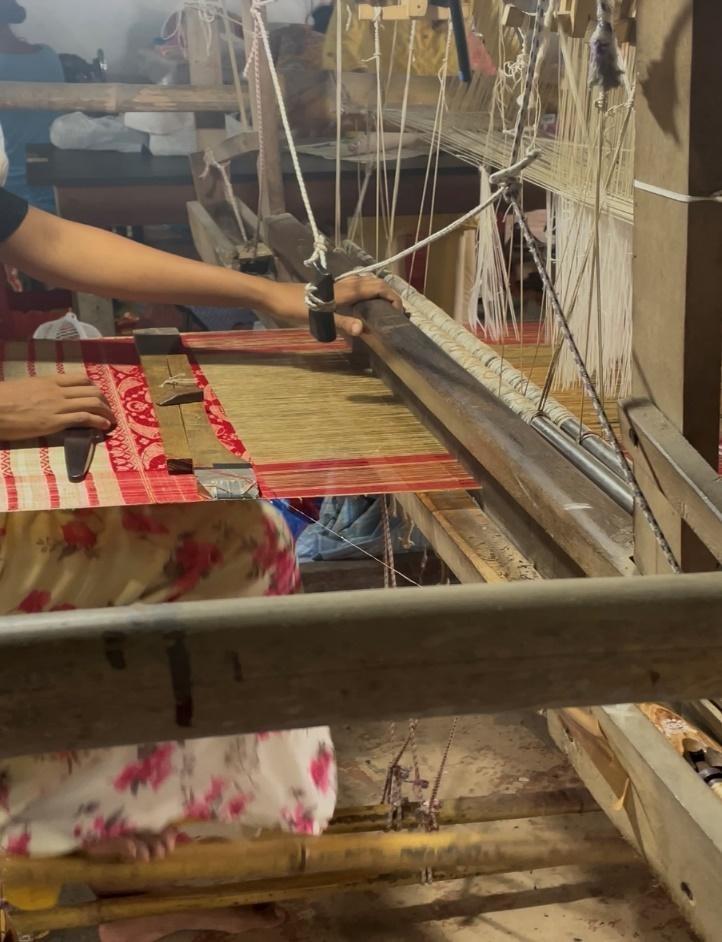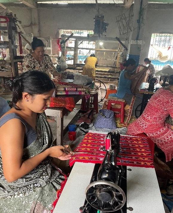 The environment at handloom industry situated right above the store was bustling with energy as the workers were already busy stitching and weaving. It showcases efforts to preserve the traditional cultural practice through industrial ventures.