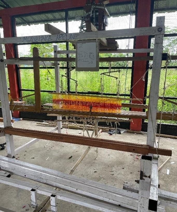Najitora Bori, owner of Chandana Industry in North Lakhimpur, elaborated the process of handlooms, specifically the fly shuttle looms. She also runs Karpungpuli (K) Society -a non-governmental organisation, along with nine other members. The traditional silk warping setup introduces visitors to the intricacies of traditional handloom practices of the community. The industry shed, where the workers were busy weaving, tells the stories of resilience of traditional handloom practice in the competitive textile markets through pioneering efforts.