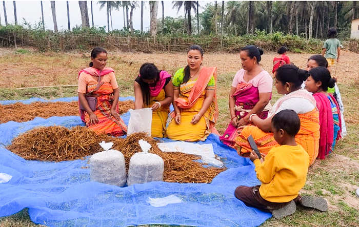 To overcome these problems, Krishna and other cultivators received technical guidance from Dr. Sandeep Das of the Department of Biotechnology, Bodoland University, where they were trained on how to protect mushroom seeds from small ants, cockroaches, and excessive moisture. This training helped her adopt better hygiene and maintenance practices, reducing losses and improving the quality of her cultivation.