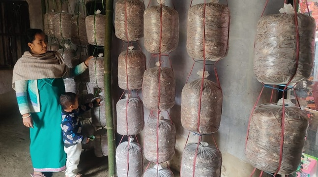 Each batch of mushroom takes about 25 to 30 days to mature, providing both food for her family and an important source of income. She purchases mushroom seeds (spawn) at around Rs. 200 per kilogram packet, which can yield 25-30 kilograms of fresh mushrooms under favourable conditions.
