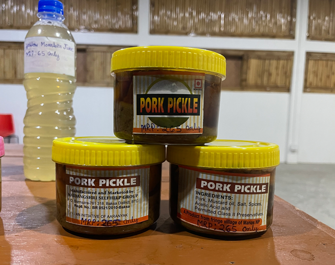 She now sells mushrooms in nearby Rupahi and Mainao Bazaar, where demand remains steady. Whenever tourists or guests visit the Aaranyak office near the national park, she brings her mushrooms and homemade juices to sell there as well. During local events like the Manas Festival, she sets up a stall to sell her mushrooms, pickles, and fruit juices, which attract both local residents and visitors. Over time, her products have gained such popularity that many customers now come directly to her home to buy mushrooms, pickles, and juices, knowing they are fresh and homemade.