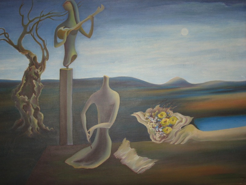 That Hemanta Misra is also a poet perhaps accounts for his lingual choice of surrealism. Surrealism which took rot in the 20’s and 30’s as an offshoot of the Dada movement, had always countered rationalism for the belief in the irrational aspect of life and human psyche. Surrealists attempted to find truth in the subconscious impulses, dreams and fantasies of human mind. The central idea of this art movement was to release the creative powers of the subconscious mind, or as Andre Breton pointed out in the manifesto, “to resolve the contradictory conditions of dream and reality into absolute reality – a superreality”.