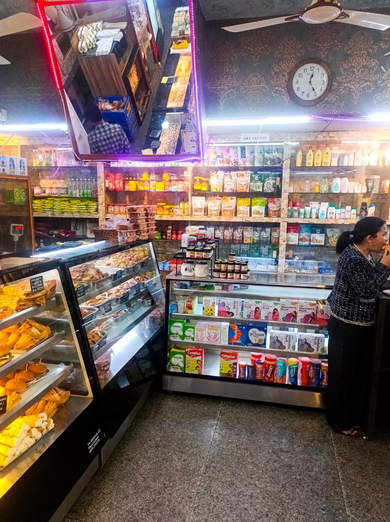 And then emanates the food orders which begin with – Aroiso gram butter biscuit diba (Give me 250 grams of butter biscuits), creating a momentum that sustains till the trays are nearly emptied and the shop preapres to draws its shutters. In a span of moments, the entire space is brought together when the required orders are billed and packed by the organized staff, with the occasional suggestion by customers- “Aaru eta bostu lou roba” (Let me buy one more item)- further displaying the bakery's mesmeric excellence. Once, the final billing is done, customers are provided with a small yellow note bearing the amount, which they carry over to the counter. While in the process of billing, one gets to witness the interior of a space that seems to hold it all. Ample cover for customers to browse around, sufficient area for management to list and carry orders, structured layout of the goods, and a small bench rooted outside accommodating customers relishing on delights; presents the overall picture of Shaikh Brother’s enduring space, one that has been thoughtfully utilized and preserved over time.