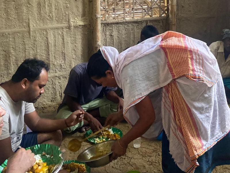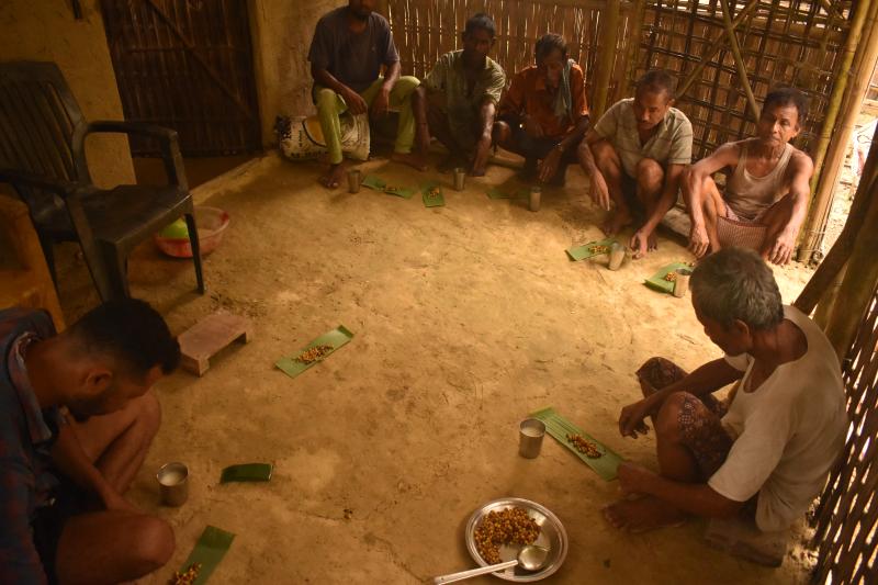 The cultural assortment continues as the tired men folk sit for a friendly sip of Laopani, Rohi Saj– a type of locally prepared rice beer - shared at the completion of a successful Kothia pora or seed sowing session. Stories are shared, among the people who were involved in the activity. This becomes a space for companionship, comradery, cultural exchange and much more.