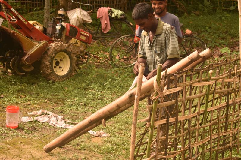 Rain trickles down the thatched roof, a distant sundown paints the sky in vivid orange hues. With a cup of tea in hand, Anil Mohon looks at his courtyard, then at his wife Usha Mohon. Deep in thought he sighs “Hopefully the weather will be good to us tomorrow!” He walks out his gateway - and sees Sukheswar Mohon, Monuranjan Mohon and Dilip Mohon approaching.
