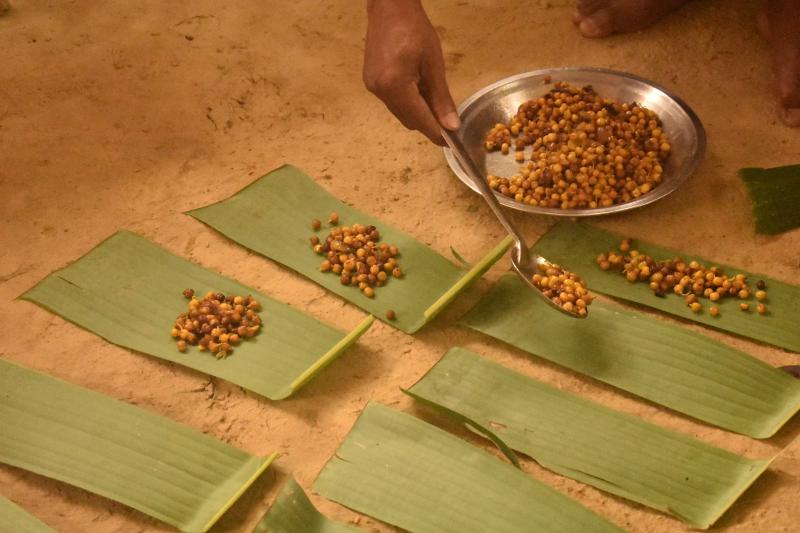 The seed comes out which is previously kept aside for harvest. For the community, this seed is holy, it is Lakshmi, the Goddess of fortune. This is what feeds the community, this is what brings them prosperity. This seed is divine to them.