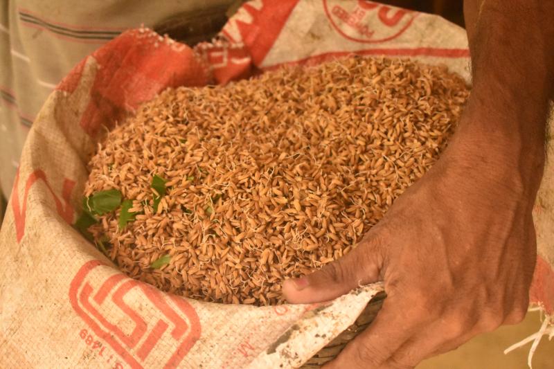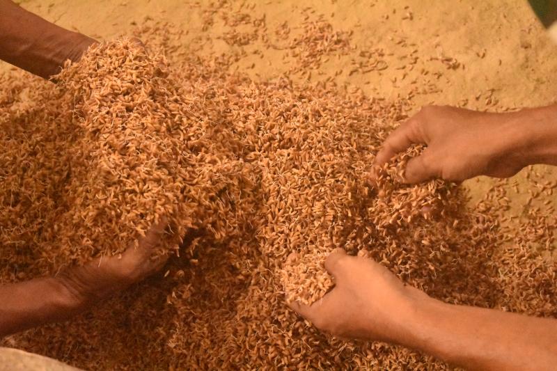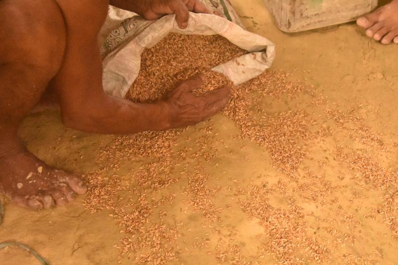 The stored seeds are lined with natural pesticides: a kind of bitter leaf mixed with it so that pests and insects keep away. Neem, Chirata are used as natural pesticides, they say.
