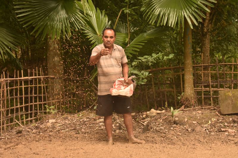 It’s time to begin the activity! says the one who was asked to come over to help with the process. Savouring a mouthful of betelnut, he lifts up the k?r (a hoe), and so it begins-