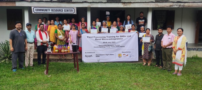 Kohora, Karbi Anglong, July 7: Aaranyak in collaboration with the Department of Agriculture, Karbi Anglong Autonomous Council (KAAC), Diphu organised a two-day food processing training and orientation programme for the Women SHGs and micro-entrepreneurs at Community Resource Centre, Kohora, Karbi Anglong.
