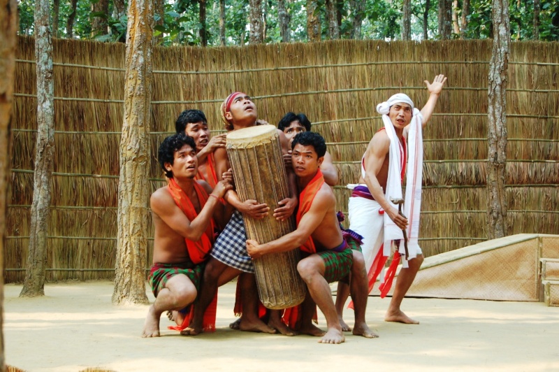 Since 2008, every year, Badungduppa organizes a four - day long drama festival titled, Under The Sal Tree. They construct a stage and the gallery with cost- effective and environment-friendly material such bamboo and betel-nut trees; the idea was so unique that not a single tree had to be cut while constructing the stage and the gallery. The modern theatres, within confined spaces of auditoriums and stages painted with artificial light, sound and make up habitually rob