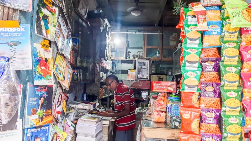 Manoranjan Kalita, who sets up his shop just around the Mahamaya restaurant corner in Panbazar, shares similar sentiments. Originally a pan dukan started by his father in 1982 to cater to passersby, Manoranjan expanded his shop over the years to include magazines, newspapers, and now even guidebooks for exam aspirants. "Every book is now available online, sometimes at even cheaper costs," he shares, a hint of resentment in his voice. "People always stick to their phones." With a mere magazine stand no longer sufficient for supporting his family of four, he decided to open a grocery shop as well. Now, his wife, son, and daughter also help him run the business.