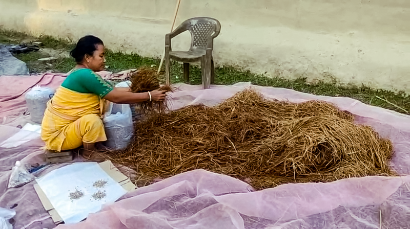 To overcome these problems, Krishna and other cultivators received technical guidance from Dr. Sandeep Das of the Department of Biotechnology, Bodoland University, where they were trained on how to protect mushroom seeds from small ants, cockroaches, and excessive moisture. This training helped her adopt better hygiene and maintenance practices, reducing losses and improving the quality of her cultivation.