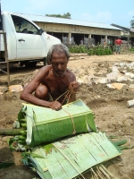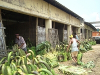 Before loading the banana bunches into the trucks, they are stocked in the godowns of the market. Each bunch is manually wrapped by green banana leaves and subsequently loaded neatly. Rabha says about 150 labours do the job daily, a figure which has been whittled down from 300 because of the growing loss of business in the market due to lack of modern infrastructure.