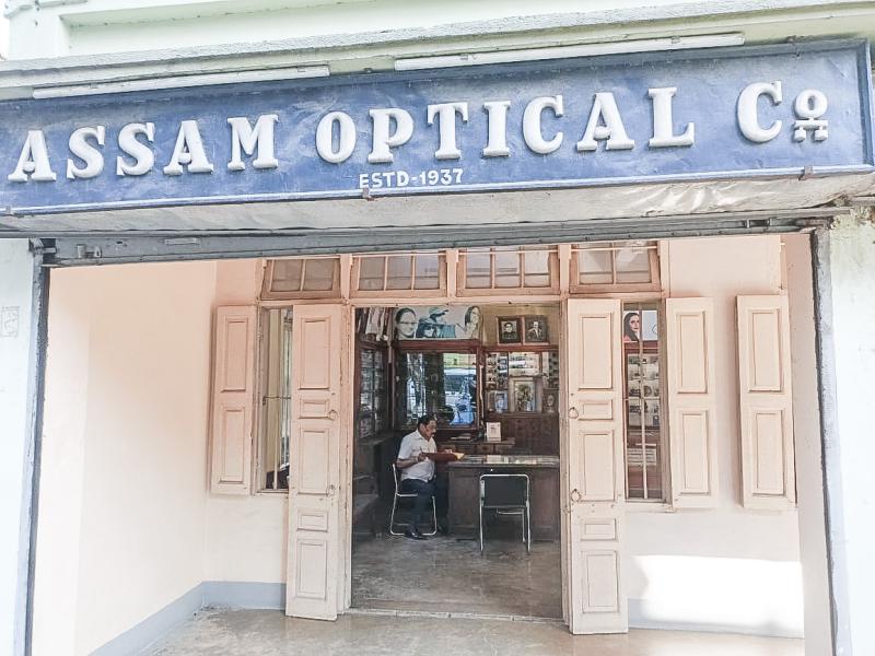 Soaring of jet engines in the sky and blaring of signals on the streets, all in a jiffy to reach their respective destination shape the contemporary dynamics of Pan bazar, Guwahati. As one of the oldest economic centres in the city, a single step along Pan Bazar’s busy pavements divulges one to a wide array of spectacles- blaring of signals, honking cars, cacophony of rickshaws, minor debacles dissolving into jubilant laughter and the street’s familiar aroma drifting from nearby bakeries elevated by the shimmering of tea leaves in a kettle. In the midst of that flow, one suddenly comes across a shop bearing a blue sign with bold-white engravings that spell, Assam Optical Co est. 1937.