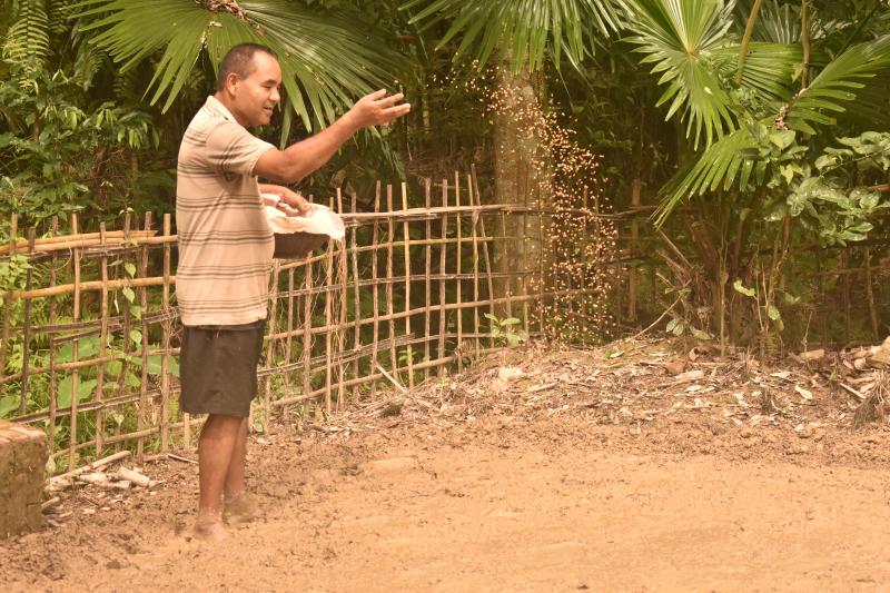 It’s time to begin the activity! says the one who was asked to come over to help with the process. Savouring a mouthful of betelnut, he lifts up the k?r (a hoe), and so it begins-